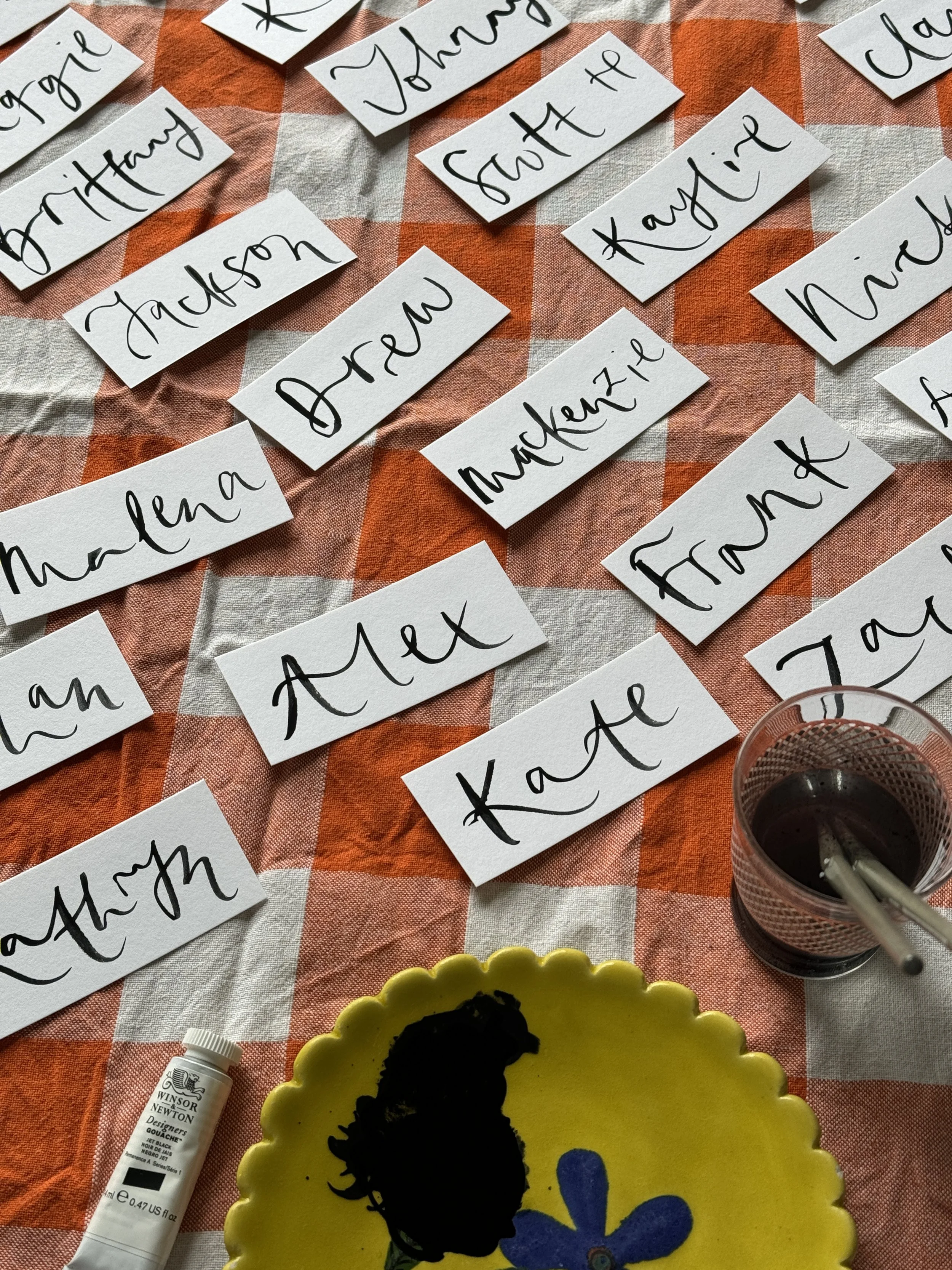 Tent fold name places, with each name hand painted in Isobel’s handwriting.
